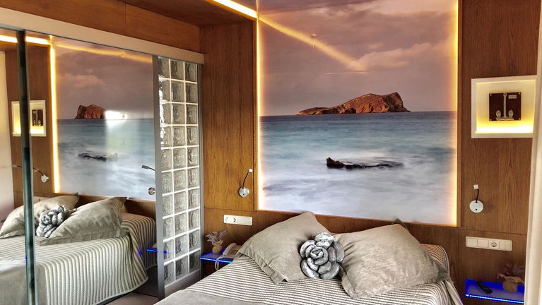 Letto matrimoniale 1,50m x 2,00m o 2 letti singoli 0,90m x 1,90m.